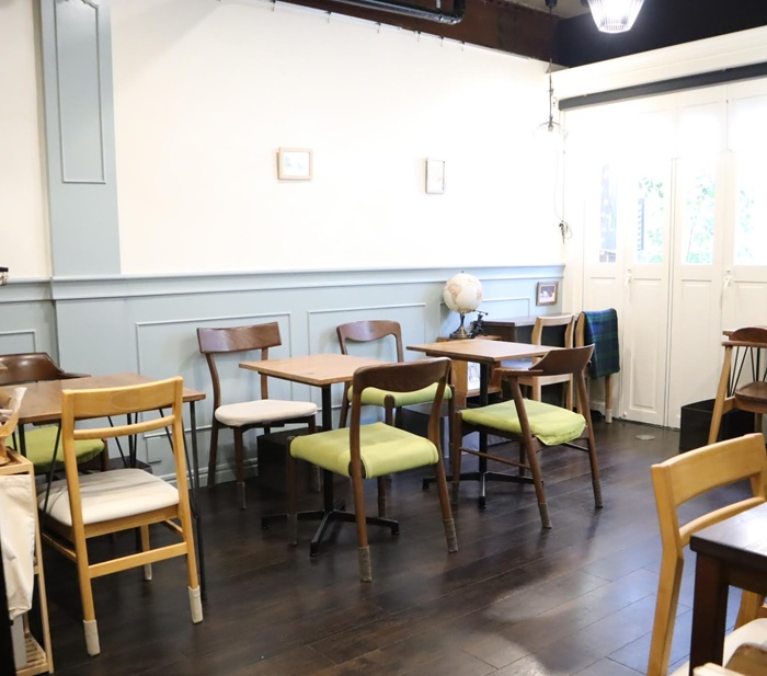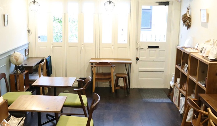 西荻窪駅北口から歩いて1~2分。白い扉の小さなカフェです